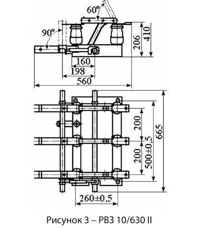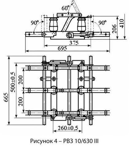 - разъединитель с приводами – 1 компл., в том числе приводы: для PB 10/630 – 1 шт; для PB3 10/630 I и PB3 10/630 II – 2 шт; для PB3 10/630 III – 3 шт;