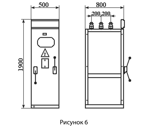 Габаритные размеры камер КСО и шинных мостов приведены на рисунках 1-8.