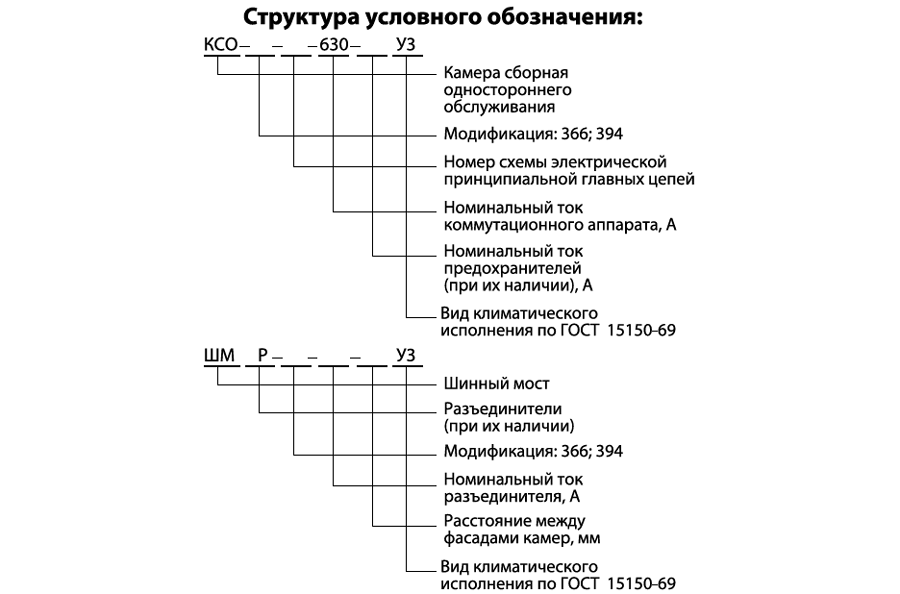 Основные исполнения камер КСО и шинных мостов приведены в таблице: